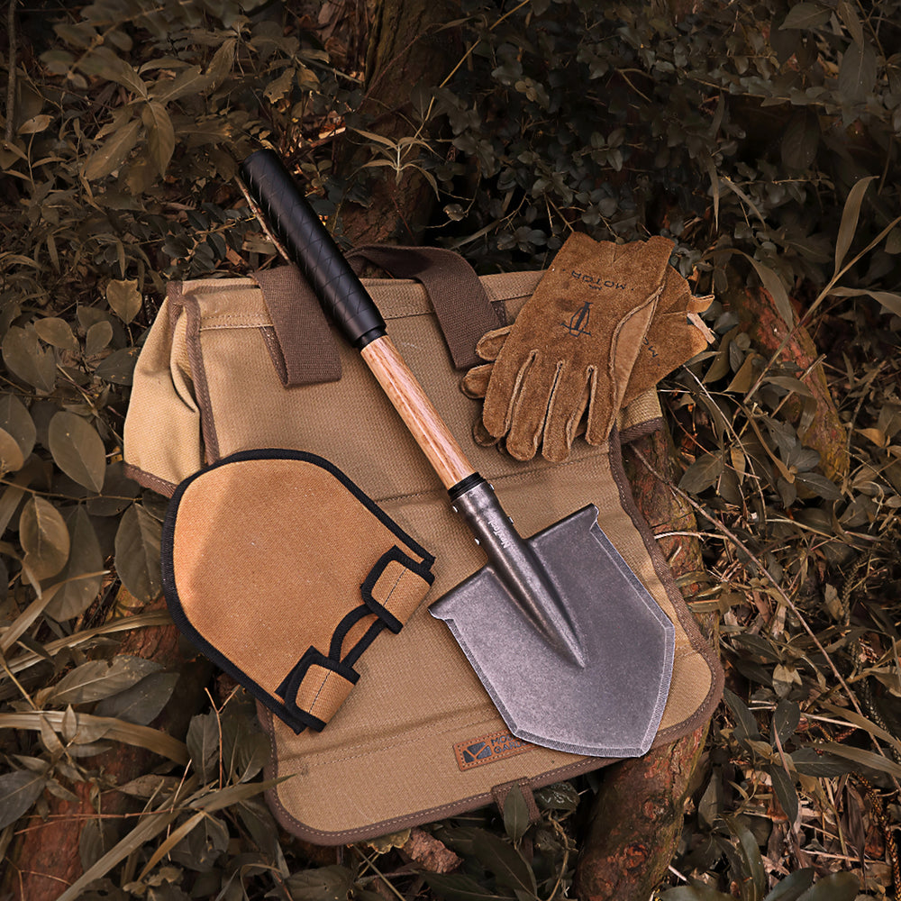 Надміцні матеріали. Полотно з корозійностійкої сталі 30Cr13 проходить термічну обробку та галтування (stonewash), внаслідок чого підвищується ударна в'язкість кромки і знижується помітність експлуатаційних слідів. Руківʼя виконане з твердої деревини бука (Fagus sylvatica), а з'єднання — з алюмінієвого сплаву 6061 для оптимального співвідношення міцності та ваги.Стійкість до навантажень до 40 кг. Конструкція руківʼя та вузлів фіксації протестована на утримання навантаження під час копання та рубання, дозволяючи працювати довше за рівномірного фізичного зусилля.Вага лише 700 г. Легкість і компактність полегшують носіння в рюкзаку, не обтяжуючи спорядження.У комплекті є чохол з вощеної парусини для безпечного зберігання. Чохол має петлю для підвішування та кріплення на сумці.
