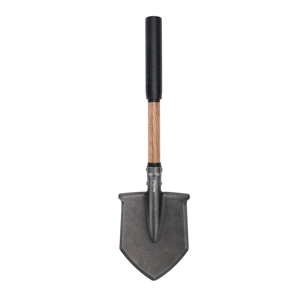 складана лопата NexTool для туризму, кемпінгу, польових завдань; матеріали – нержавіюча сталь 30Cr13, алюміній 6061, деревина бука; max навантаження – 40 кг; довжина у складеному положенні – 416 мм; довжина у відкритому вигляді – 560 мм; ширина – 152 мм; вага – 700 г; чохол є в комплекті.