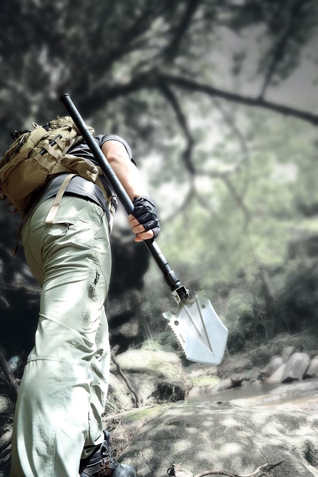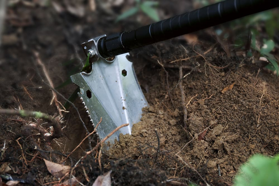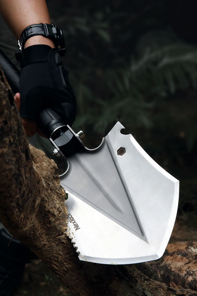Багатофункціональна лопата - відмінний пристрій для потреб туристів та інших категорій активних осіб. Включає 14 функцій, які знадобляться для вирішення найчастіших і типових завдань. У складі виробу – високоякісні матеріали. Лопаточна головка та рукоятка відповідно виготовлені з антикорозійної мартенситної нержавіючої сталі 20Cr13 та високоміцного авіаційного алюмінію 6061-T6, що забезпечує довгі роки інтенсивного використання у суворих умовах.