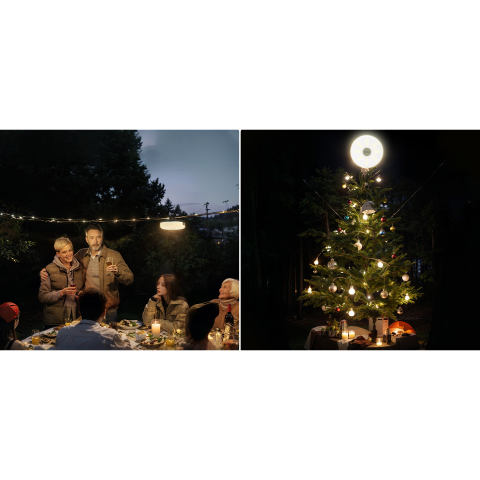 Функціонал 2 в 1. Пристрій можна використовувати як портативний кемпінговий ліхтар або світлодіодну гірлянду. Довжина гірлянди досягає 20 м.Автономна робота. Вбудований акумулятор літієвий 18650 ємністю 2600 мАгод забезпечує тривалий час роботи без підзаряджання. Елемент живлення заряджається через порт USB Type-C.Захист за стандартом IP67. Конструкція захищена від пилу та вологи, не боїться дощу та складних погодних умов.Корпус виготовлений з ABS-пластику , стійкого до механічних пошкоджень та падінь з висоти до 1 м.