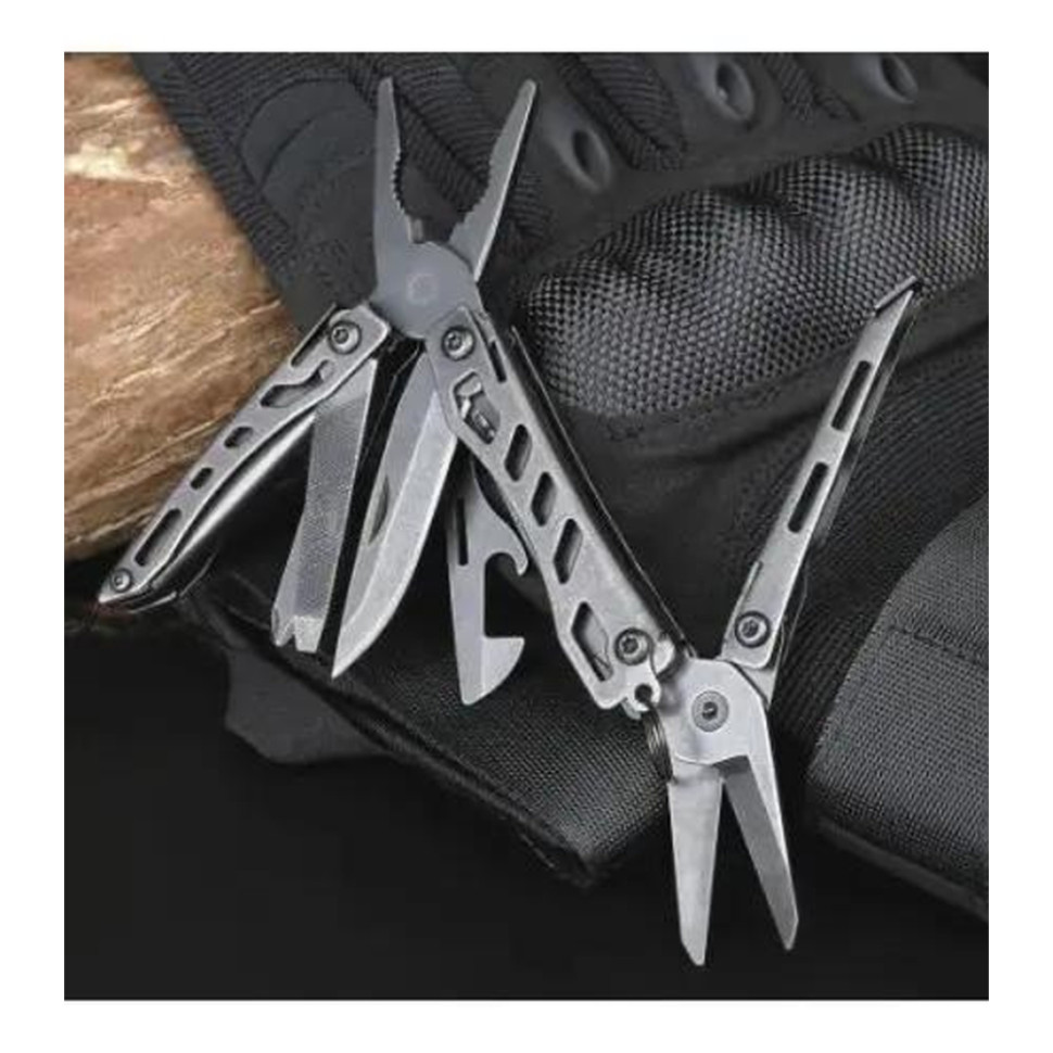 Модель оснащена плоскогубцями з тонкими губками, які підходять для роботи з м'яким дротом та гайками розміром < M6. Також є ножиці з пружинним механізмом, напилок, ніж з прямим лезом, відкривачки для банок та пляшок, шліцева та хрестова викрутки.