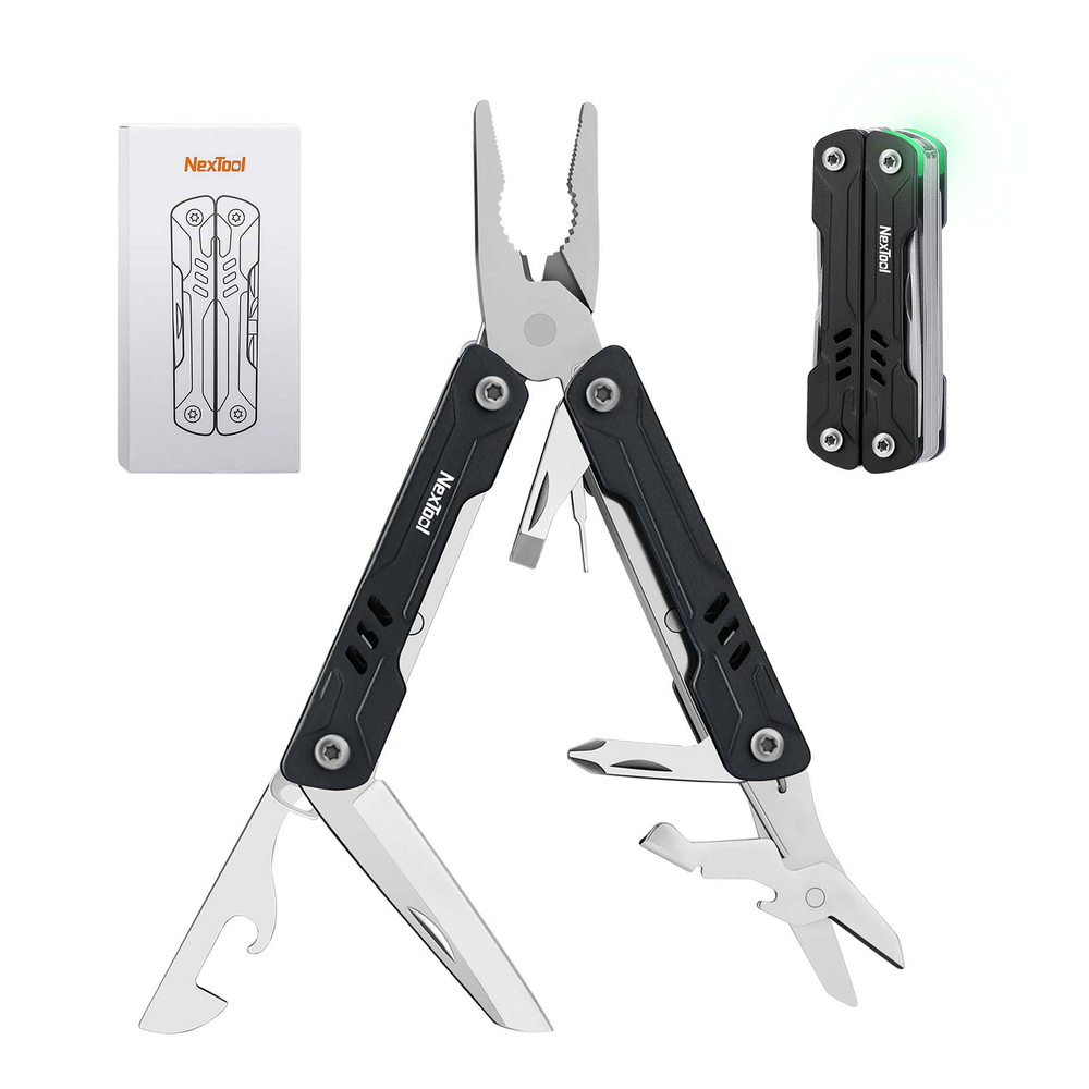 кишеньковий мультитул NexTool Mini Sailor Pliers S11 з вбудованими вставками, що світяться; колір – чорний; кількість функцій – 11; матеріали інструментів – нержавіючі сталі 420J2, 20Cr13, 30Cr13, 5Cr15MoV; матеріал рукояті – алюміній 5052; твердість леза – 56-58 HRC; довжина у відкритому вигляді – 103 мм; довжина у закритому положенні – 67 мм; ширина – 25 мм; товщина – 15 мм; вага – 80 г; є кільце-петля для підвішування.