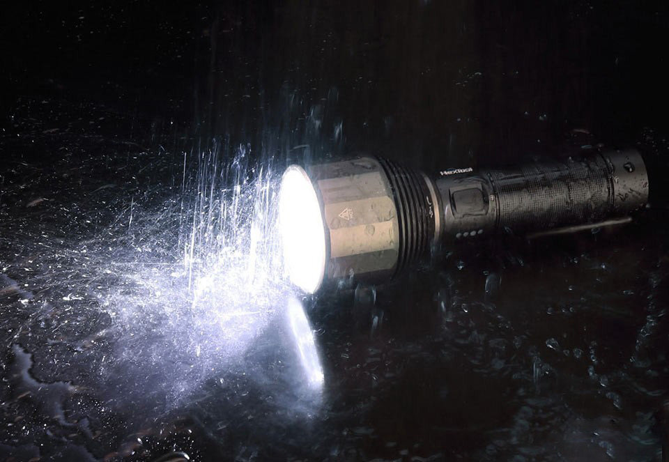 Максимальная мощность фонарика 2000 люмен, а его широкий луч способен охватить площадь до 380 метров!