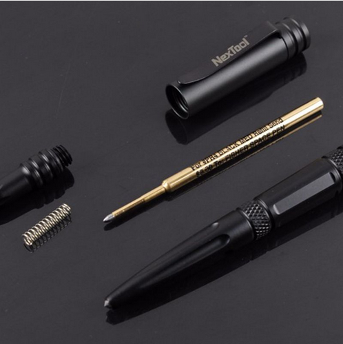 Опис тактичної ручки Nextool KT5501:Тактична ручка NexTool KT5501 має привабливий дизайн і чудові пишучі властивості. Корпус з міцного алюмінієвого сплаву з жорстким анодуванням військового класу. Є ковпачок з кліпсою для захисту пера. Всі частини корпусу ручки міцно скріплені кільцями. У kt5501 встановлений стрижень з "космічними чорнилами" від Fisher Space pen , який дозволяє писати ручкою практично на будь-якій рівній поверхні, у воді, на стелі і навіть в космосі! Стрижні Fisher Space Pen використовуються космонавтами NASA.